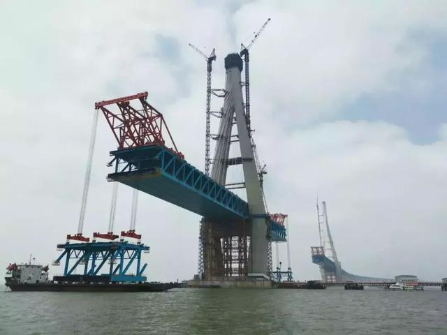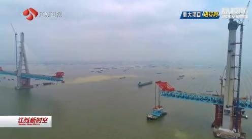 滬通長(zhǎng)江大橋主橋鋼梁架設(shè)過(guò)半